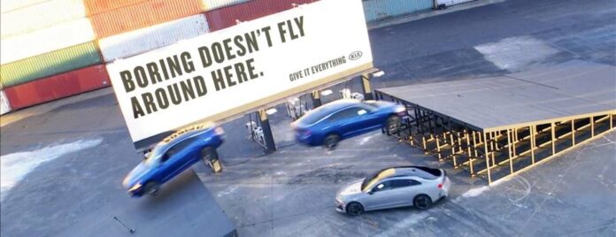 Para presentar el sedán mediano más potente de la marca, Kia Motors America (KMA) ejecutó un atrevido “truco de triple amenaza” realizado por conductores profesionales en una pista fuera de Atlanta.