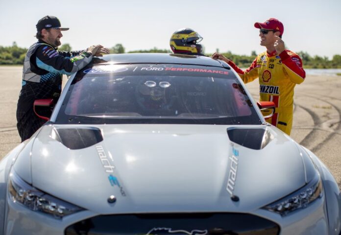 El campeón de la NASCAR Cup Series, Joey Logano, tuvo esta semana la oportunidad de sentir la pura potencia eléctrica del prototipo único Mustang Mach-E 1400 junto con la famosa estrella de la deriva de Ford, Vaughn Gittin Jr., en el Romeo Proving Grounds de Ford en Michigan.