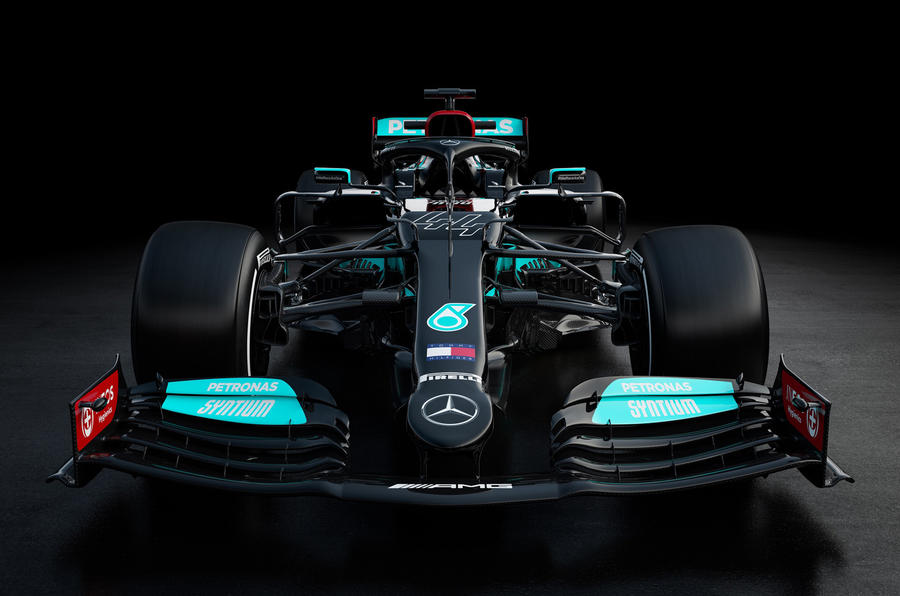 Mercedes-AMG mantiene la base negra que se introdujo el año pasado para resaltar su apuesta por mejorar la diversidad, aunque hace un mayor uso del tradicional plateado de Mercedes.