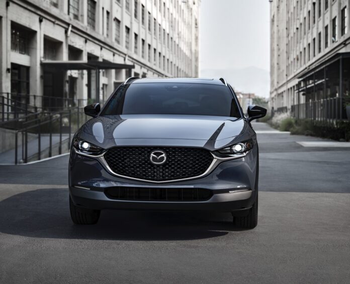 El CX-30 obtiene funciones de asistencia al conductor, como advertencia de colisión frontal con frenado automático y asistencia para mantener el carril.