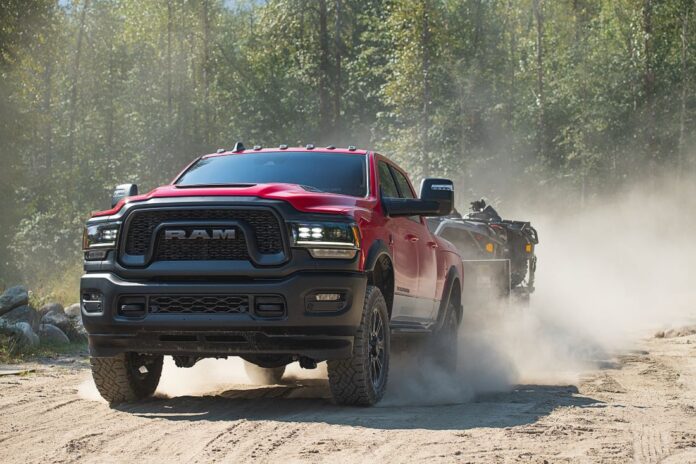 La capacidad máxima de remolque de la Rebel del 2023, cuando está debidamente equipada, es de 16,870 libras, significativamente más que las 10,850 libras de la Power Wagon.