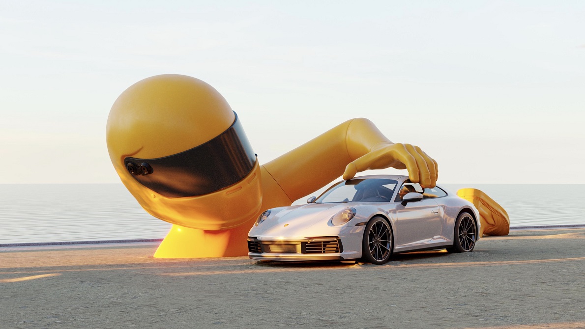 La pieza central de “Dream Big” es un Porsche 911 Carrera 4S blanco. En manos de una colosal figura con un casco de piloto, el Coupé parece un coche de juguete. La obra es un homenaje a los sueños de la infancia. Con un tono lúdico, la instalación pretende inspirar al espectador para que se pregunte a dónde le llevarán sus sueños.