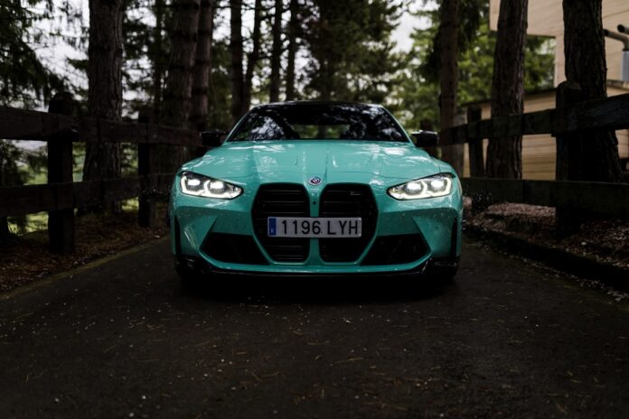 BMW M4 Competition Coupé con pintura exterior BMW Individual Mint Green e instalación de accesorios BMW M Performance