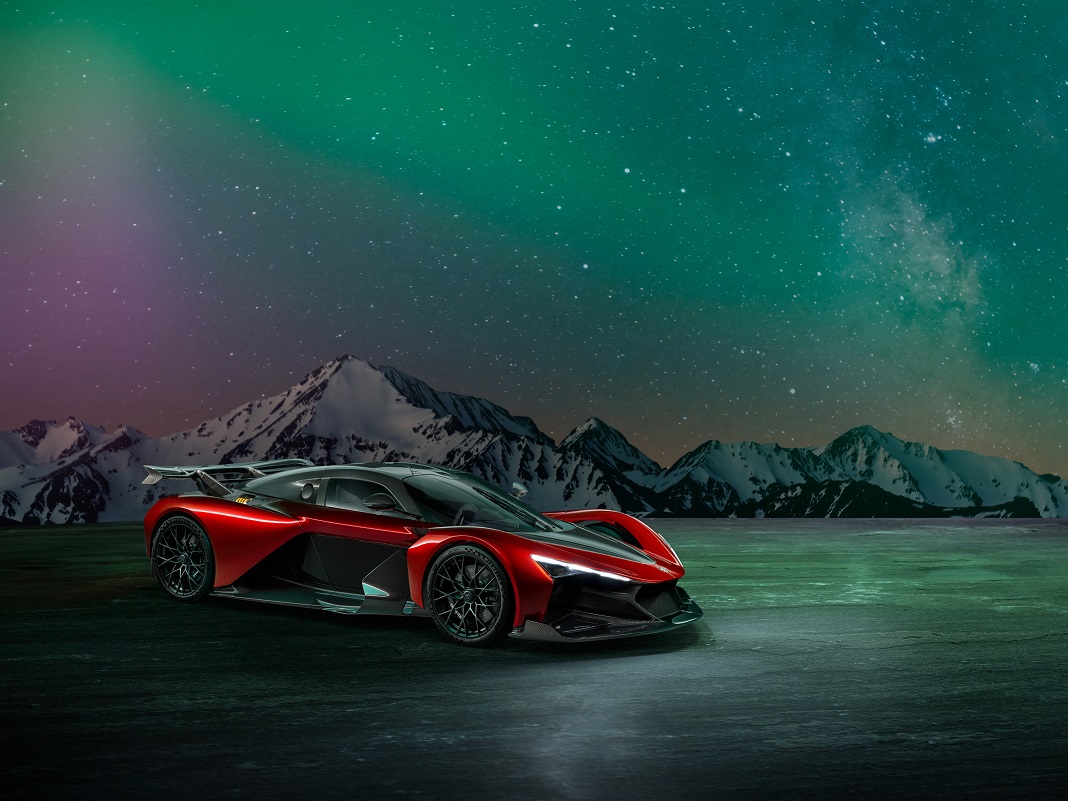 | Motor y tren motriz | Motor V12 de 6,6 litros a medida de 90 grados en V caliente, quad-turbo y convertidores catalíticos precalentados, que generan 1.250 CV est. Motor eléctrico integrado, que genera 200 CV esti. Motores eléctricos adicionales en cada rueda delantera, que generan 200 CV cada uno Salida del sistema combinado est. 1.850 CV Par máximo est. 1.700 Nm Revoluciones máximas del motor 9.800 rpm Lubricación por cárter seco Sincronización variable de válvulas Sistema de vectorización de par eléctrico delantero con 300 kW de salida est . – caja de cambios de paletas de velocidad con una potencia de >150 kW |