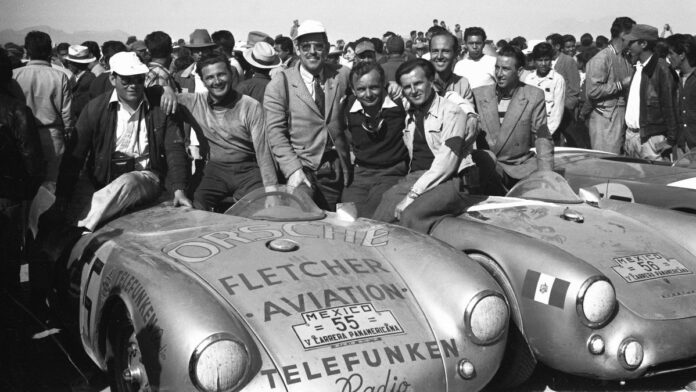 La historia de Porsche en La Carrera Panamericana dio comienzo en 1952, pero fue en 1954 cuando un equipo oficial de la marca compitió por primera vez y consiguió la tercera posición en la general, además de una victoria de clase.