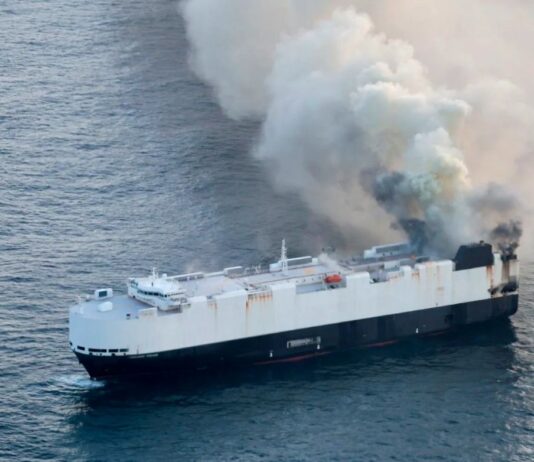 Se incendia un carguero con autos chinos que iba rumbo a México